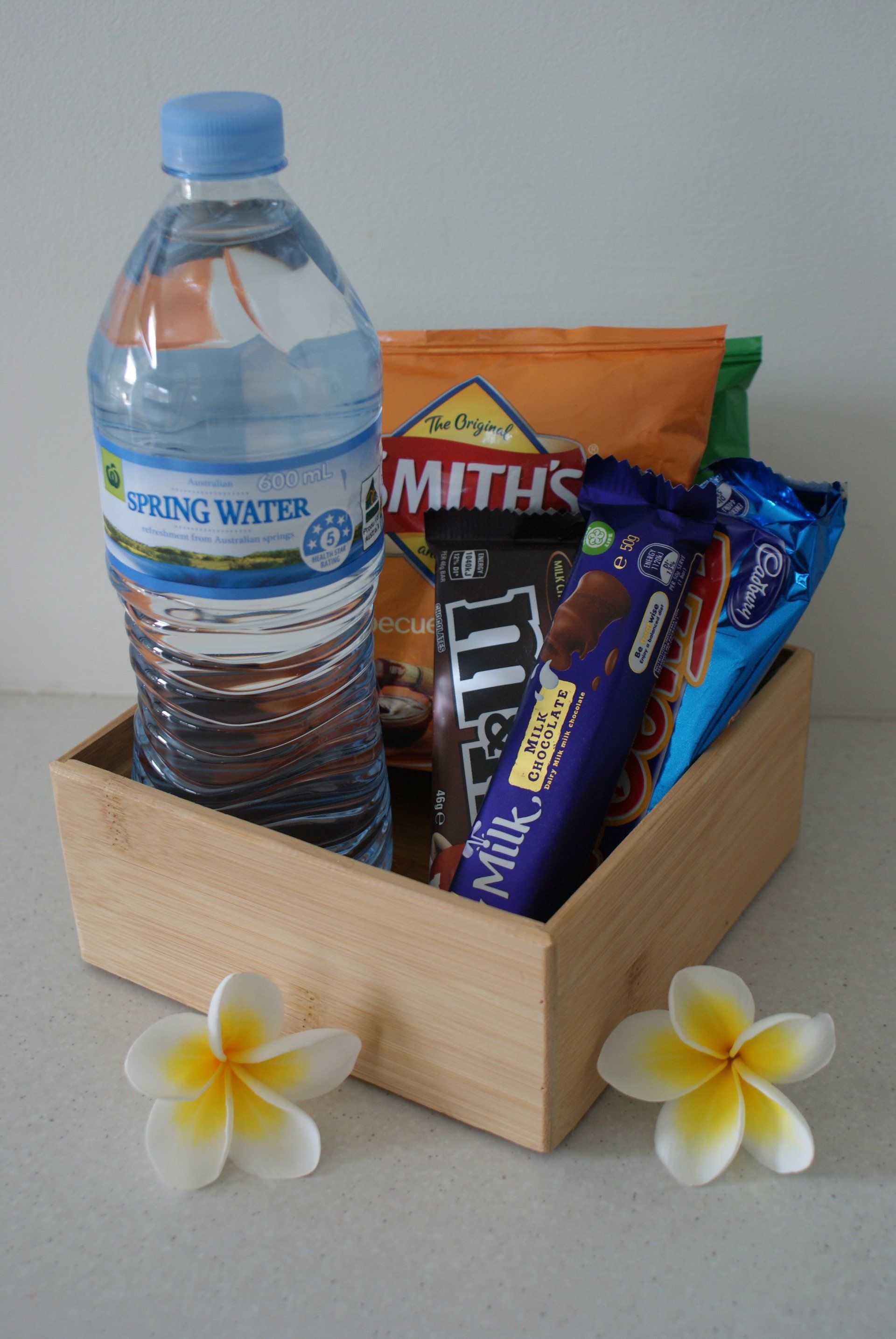 Snacks available for your convenience. Chocolate, Chips and Drinks.